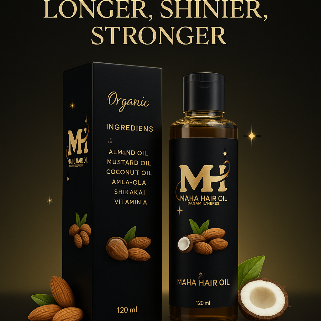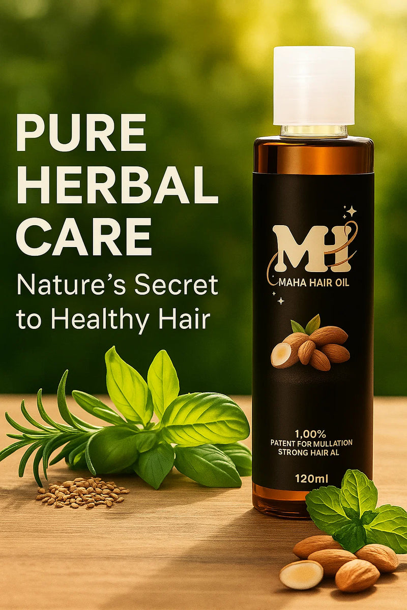 Explore the efficacy of Maha Hair Oil, crafted with organic herbs, almond oil, and coconut extracts. This special formulation deeply nourishes the scalp, fortifies hair from roots to ends, and aids in diminishing hair fall while fostering robust growth.